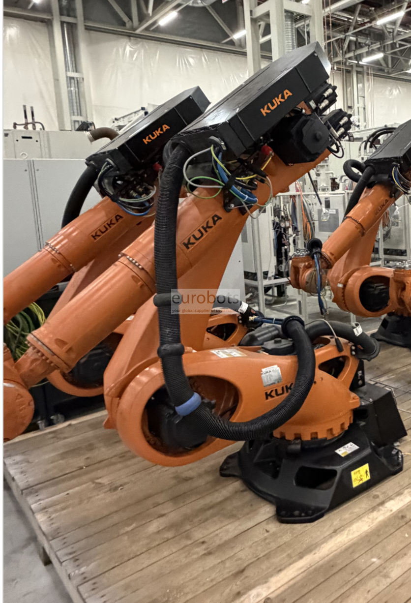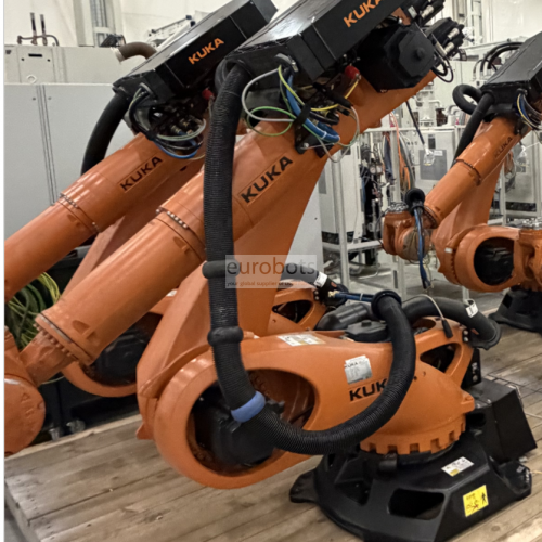 Robô industrial KR150 R3700K Prateleira seis eixos. É um robô rápido e preciso com capacidade de carga de 150 mm e alcance do braço de 3.700 mm, tem uma precisão de repetição inferior a ± 0,06 mm. Adequado para manuseio geral, soldagem a arco e operações de usinagem que requerem ciclos de tempo curtos.