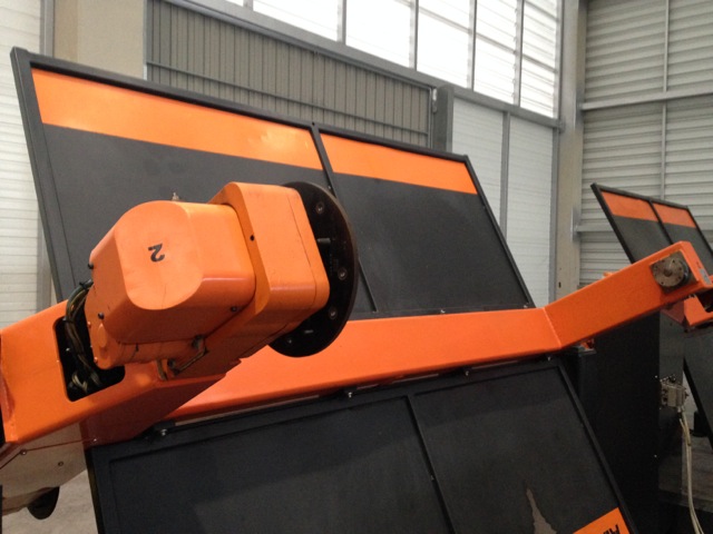 ABB servocontrolled turn table, 250 kg payload, 2 axis plus a center turn for switching stations (loading - unloading)