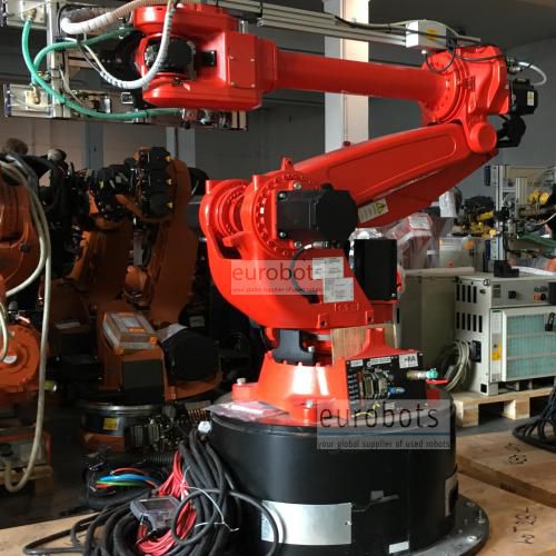 Six axis industrial robot with a large working envelope featuring 2980 mm horizontal arm reach and 110 kg payload. This robot belongs to the latest NJ series which is currently for sale from the manufacturer. This robot is fast robot which does not require any additional mechanical counterbalance system in axis number 2 because of its light and slim strucure.