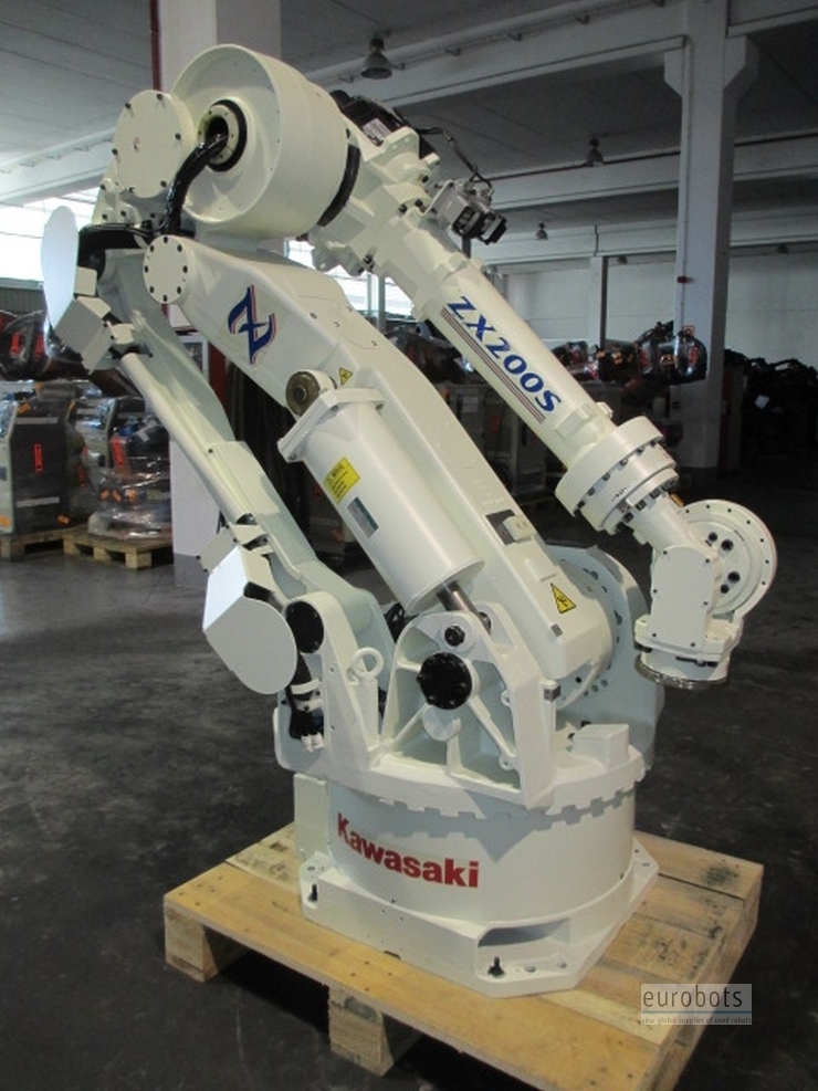 The Kawasaki ZX Series robots are designed for heavy-duty payload applications requiring a flexible work envelope. The patented Kawasaki Hybrid Link Configuration allows the robot to flip-over backward minimizing plant floor space requirements. The new space saving design incorporates a small footprint with integrated air piping and wiring. The IP65 rated robot arm enables the ZX Series robots to operate in the most severe environments reaches, speeds and payloads.
